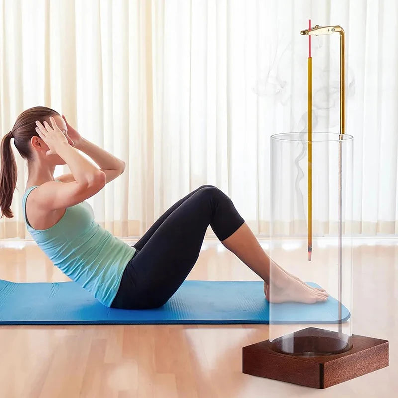 Med sin stilrena glascylinder, massiva träbas och sofistikerade guldfärgade metallarm låter SERENI™ rökelsen sväva fritt i luften medan röken sakta rör sig uppåt i ett lugnande och meditativt mönster. Samtidigt samlas askan diskret upp i glaset – rent, säkert och vackert.