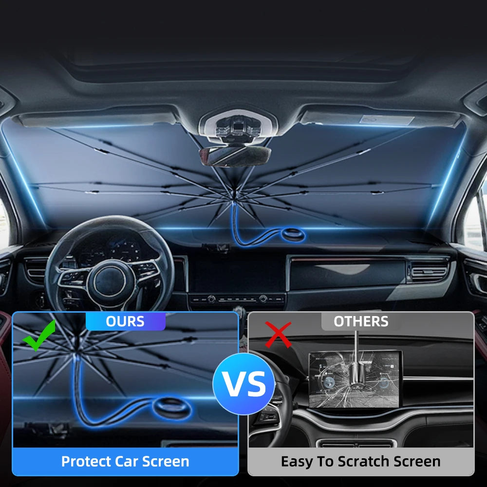 HELIOS är ett smart, hopfällbart bilparaply som skyddar din bil mot intensiv sol, värme och skadliga UV-strålar. Med effektiv värmereflektion håller det kupén svalare och skyddar instrumentbrädan – enkelt, snabbt och platsbesparande.