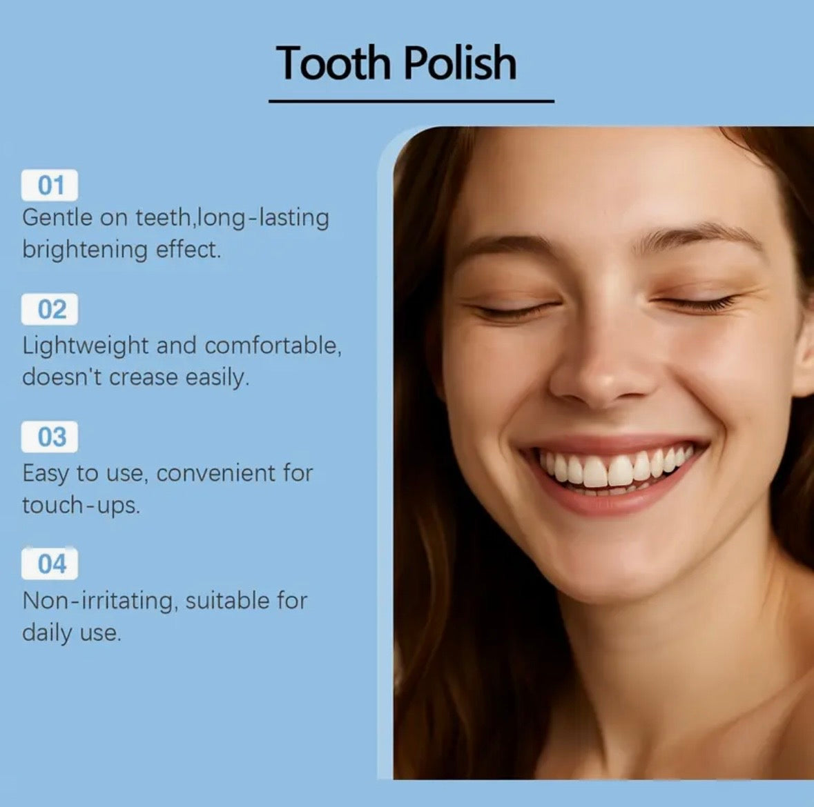 🦷 Jämnar ut missfärgningar: Täcker tillfälligt ojämn färg och ger ett fräscht leende.