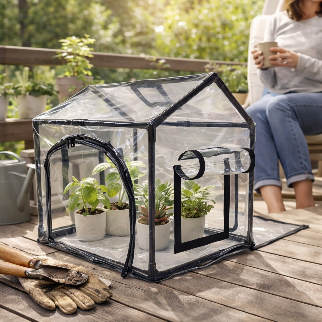 🌞 Genomskinligt PVC-skydd: Släpper in maximalt ljus och skapar ett perfekt växtklimat.