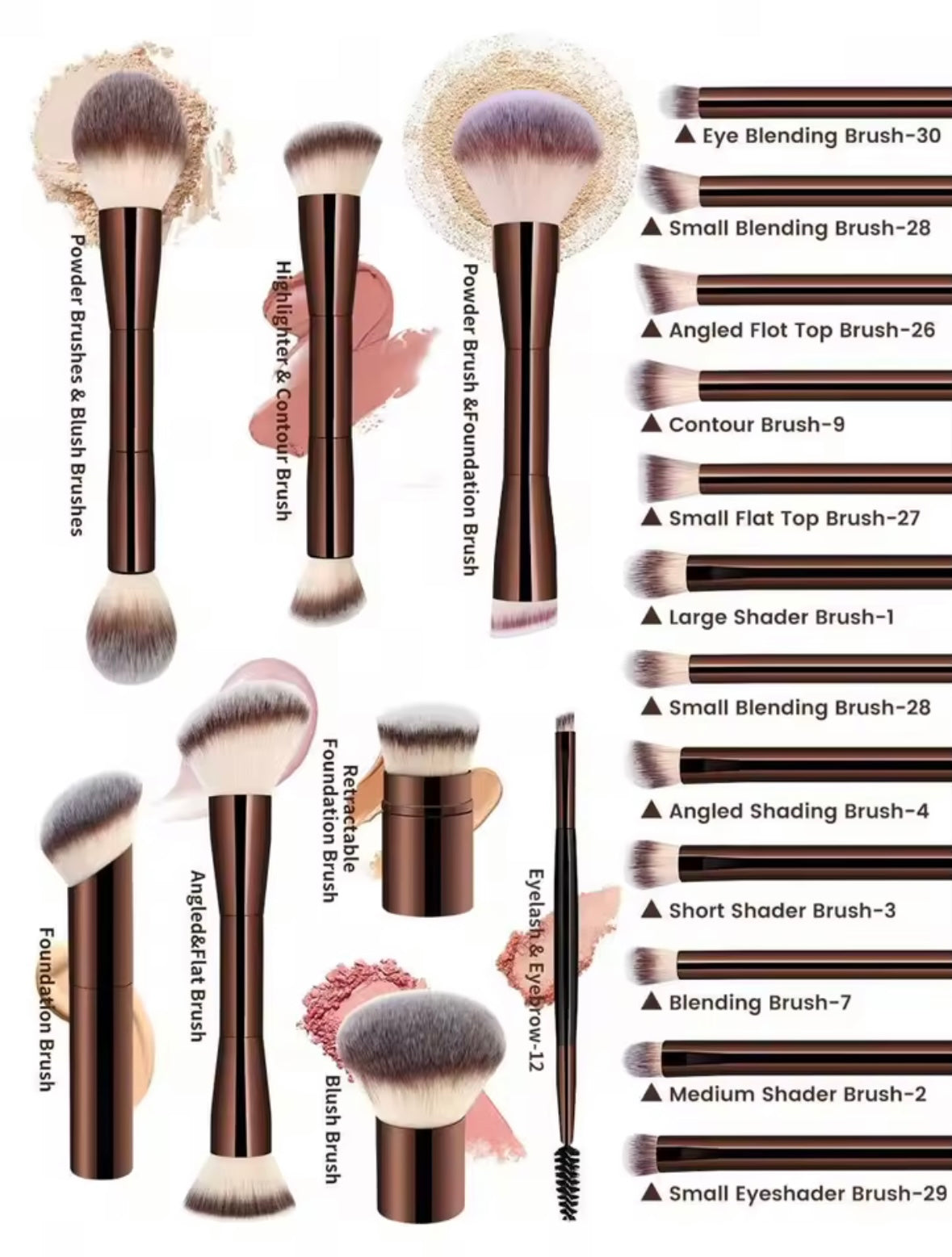 💄 Komplett set: Innehåller alla borstar du behöver för foundation, puder, contour, rouge, ögon och detaljer.
