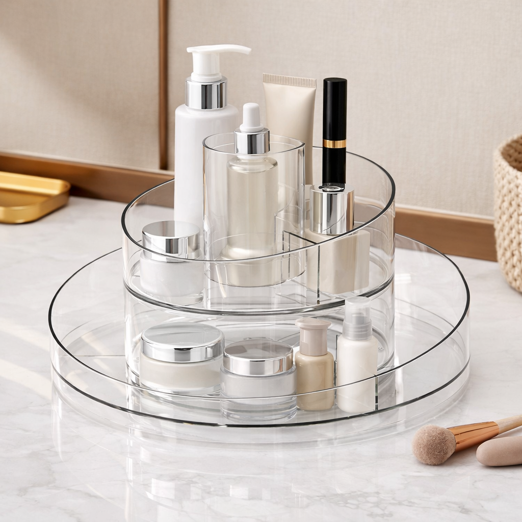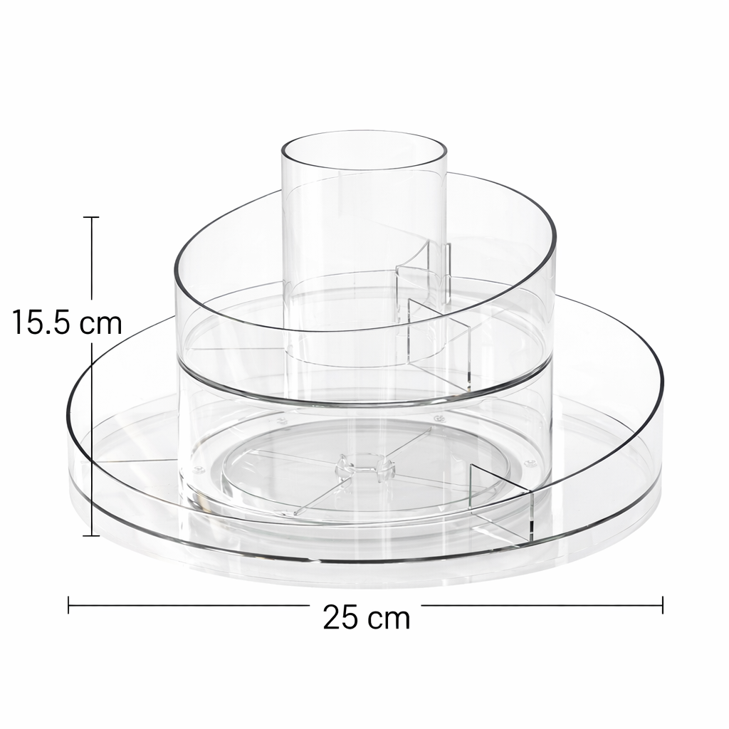 Håll din skönhetsrutin stilren och organiserad med GLAMORA. Denna roterbara sminkorganisatör ger dig en elegant och praktisk lösning för att förvara smink, hudvård och accessoarer på ett och samma ställe. Med smart design och 360° rotation får du snabb åtkomst till alla dina favoriter samtidigt som ditt badrum eller sminkbord hålls snyggt och organiserat.