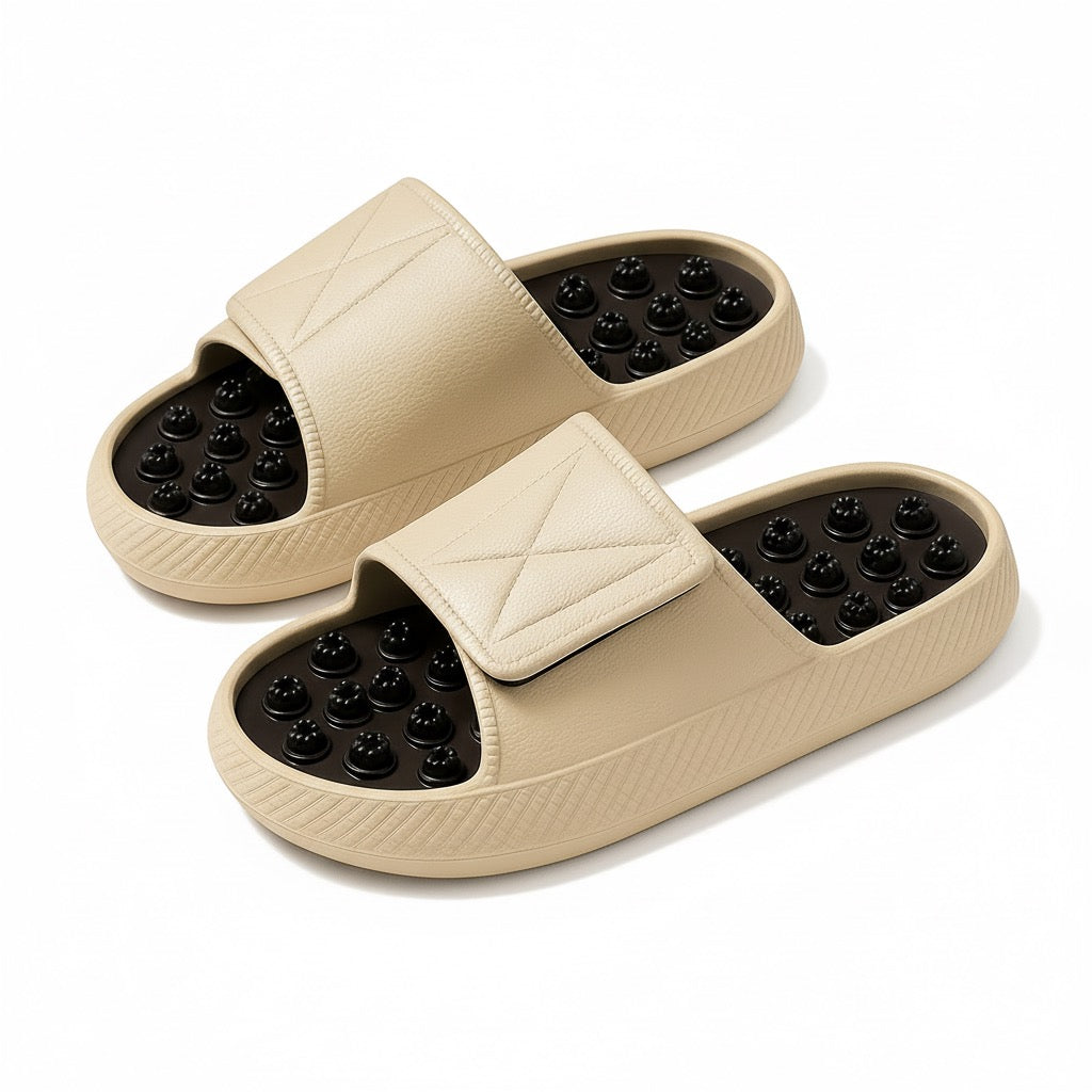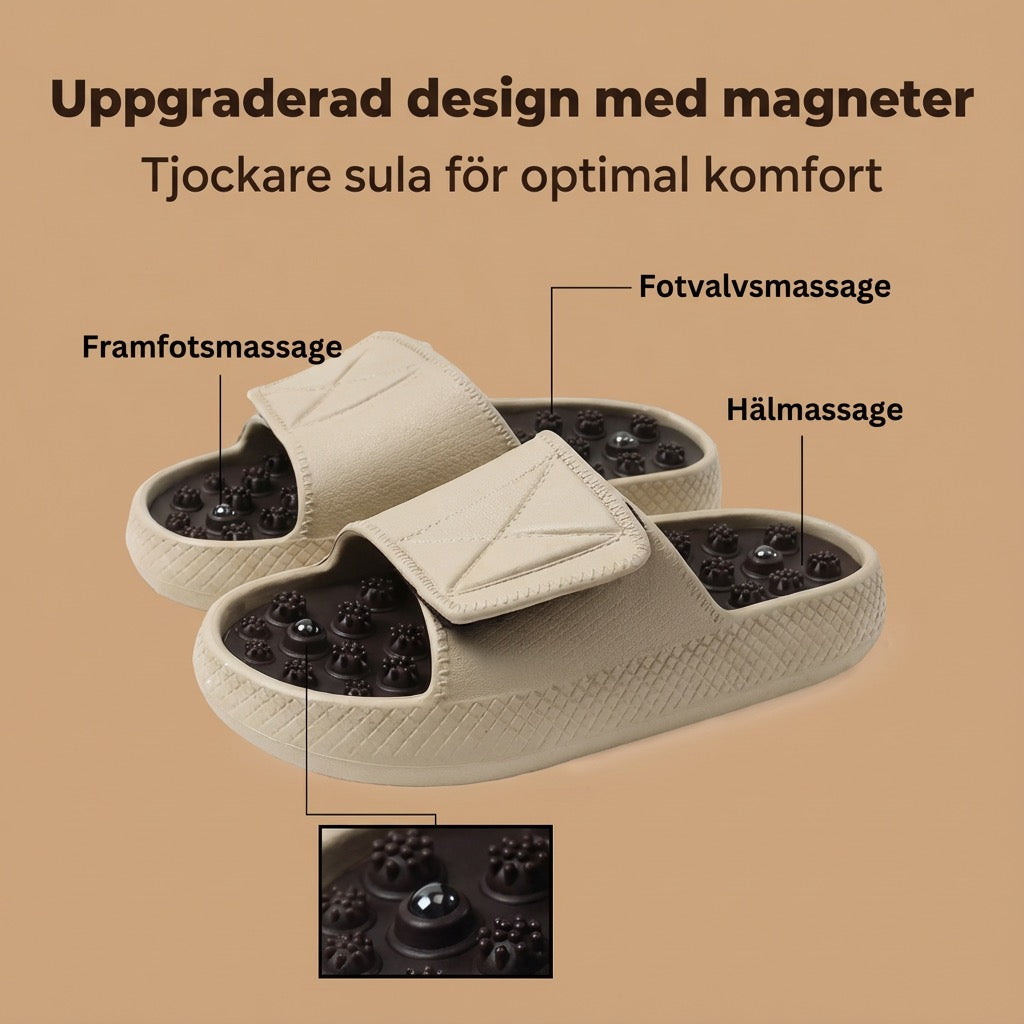 Våra zonterapi-tofflor kombinerar uråldrig zonterapi med modern magnetteknik för att stimulera viktiga punkter under fötterna. Resultatet är bättre cirkulation, mindre spänningar och en behaglig massage varje steg du tar.