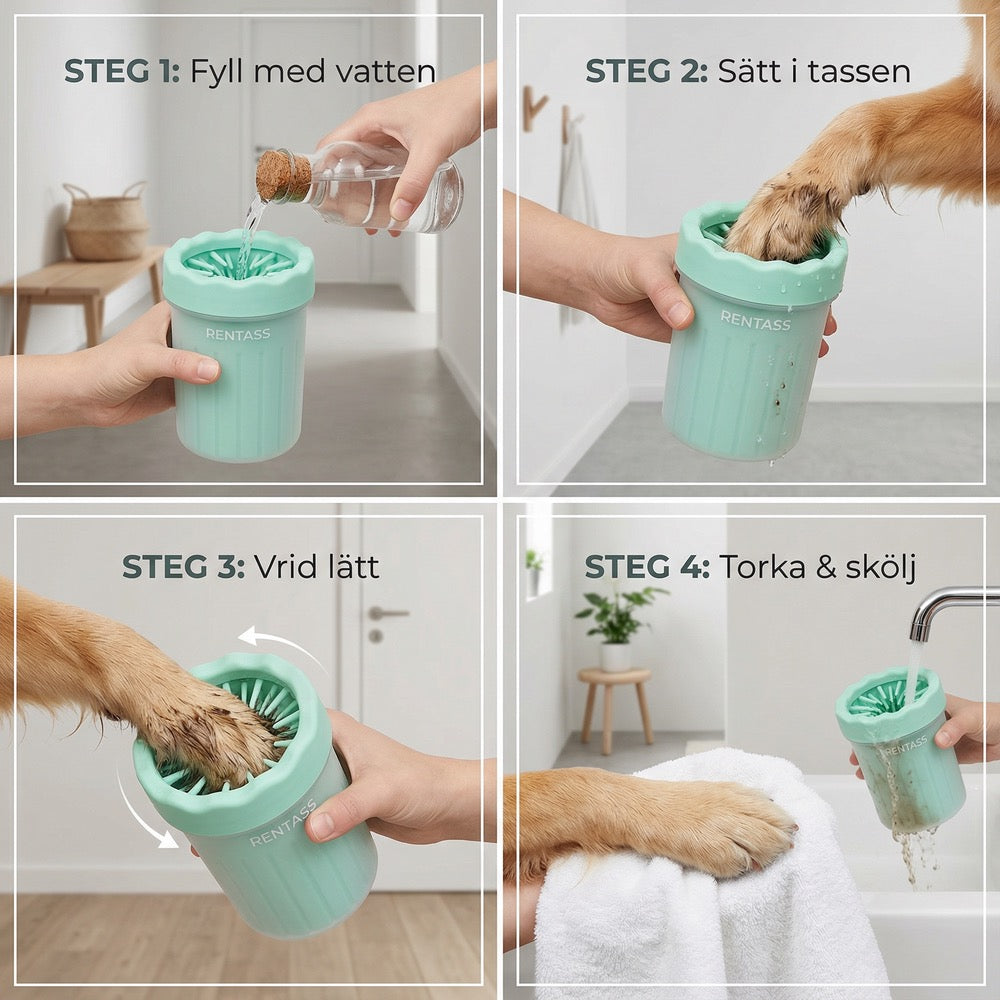 🐾 Snabb tassrengöring – Rengör tassar på några sekunder.