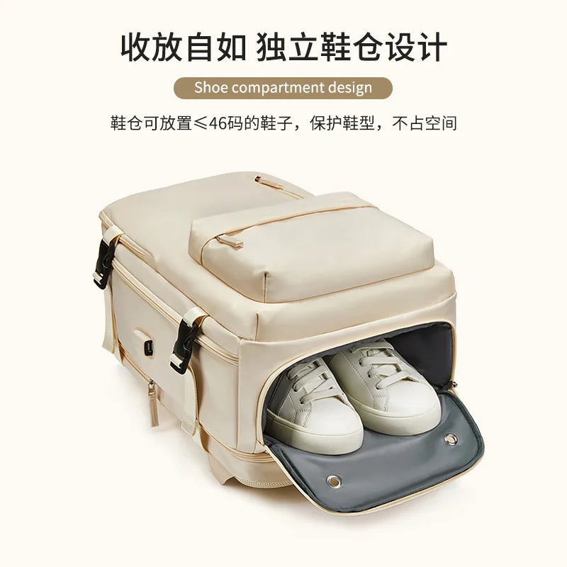 👟 Separata fack för skor och våta plagg: Utrustad med 2 huvudfack, 2 laptopfack, ett vattentätt våtfack och ett separat skofack för optimal ordning.