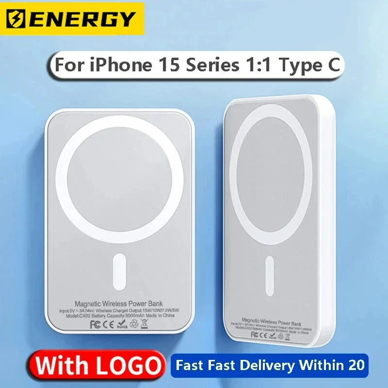 Den kompakta och smarta designen gör laddning enkel när du är på språng. De inbyggda magneterna justerar powerbanken automatiskt mot mobilen och ger säker, stabil trådlös laddning – helt utan knappar.