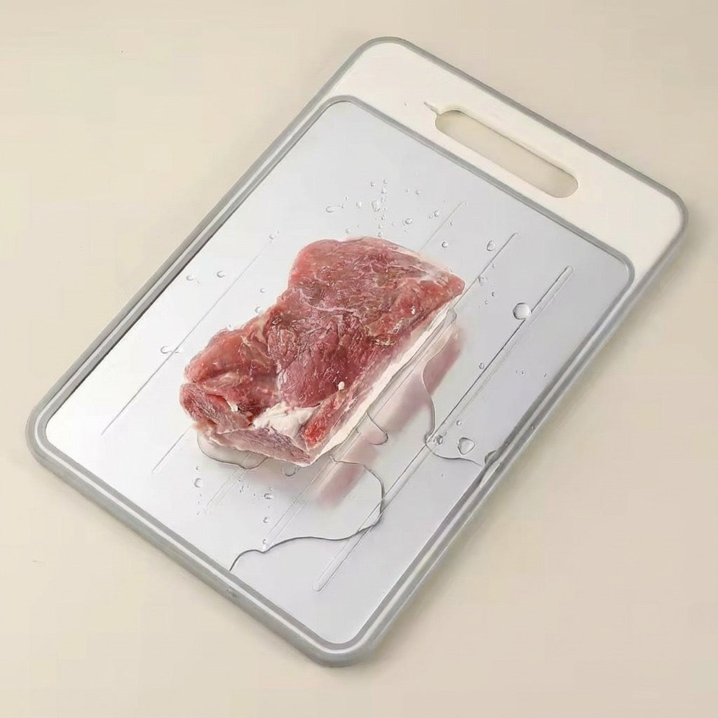 FrostFri använder en värmeledande yta som gör att kött och fryst mat tinar snabbt utan mikrovågsugn eller varmt vatten. Samtidigt får du en skärbräda som är dubbelsidig, en rivare och en knivslipare – allt i ett. Det sparar tid, minskar stress och gör matlagningen mycket enklare. Du slipper vänta, du slipper krångel, och du får mer kontroll i köket.